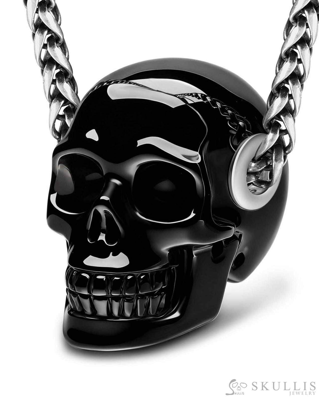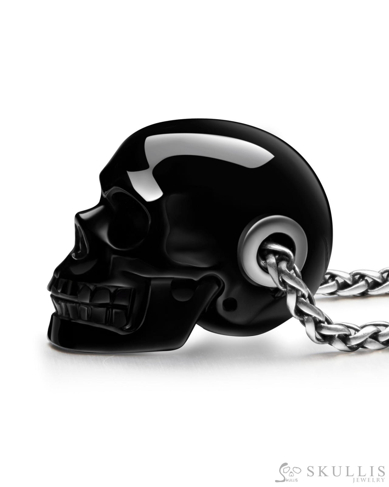 /Skullis Signature Black Obsidian Gem Skull Pendant or Necklace, Hand Carved, for Women & Men