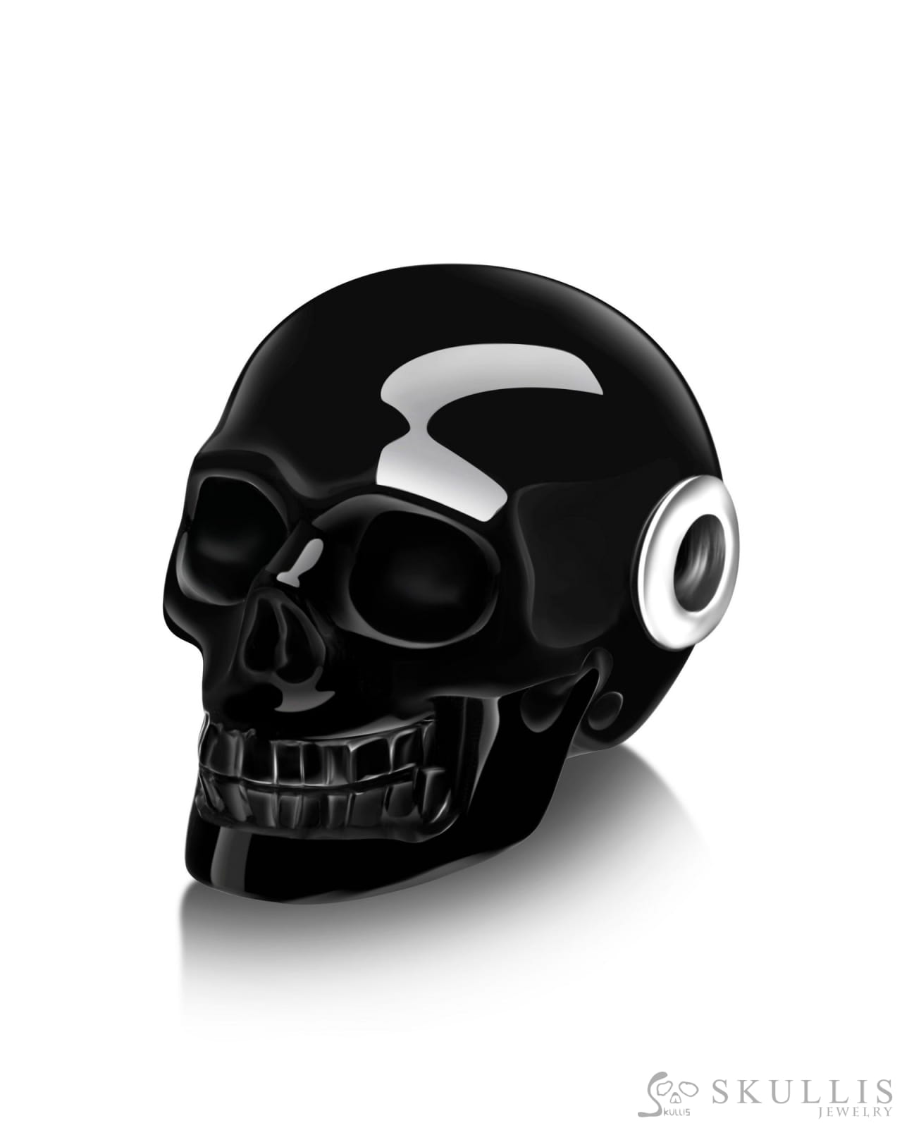 Skullis Signature Black Obsidian Gem Skull Pendant or Necklace, Hand Carved, for Women & Men