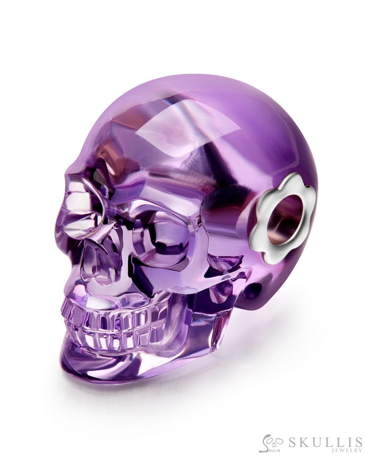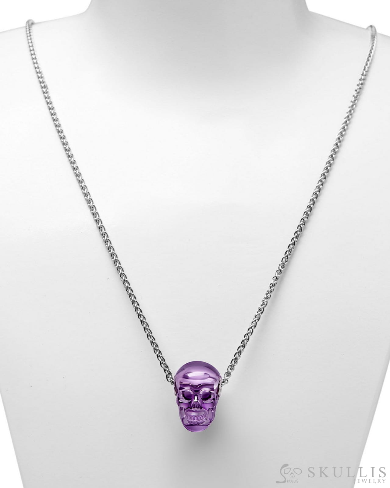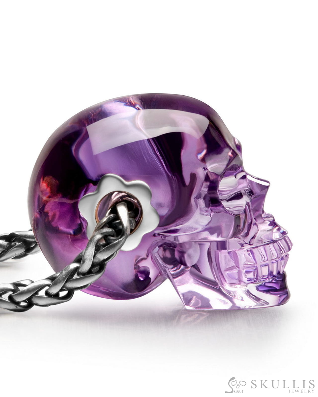 Skullis Signature Amethyst Gem Skull Pendant or Necklace, Hand Carved, Sterling Silver .925 Chain, for Women & Men