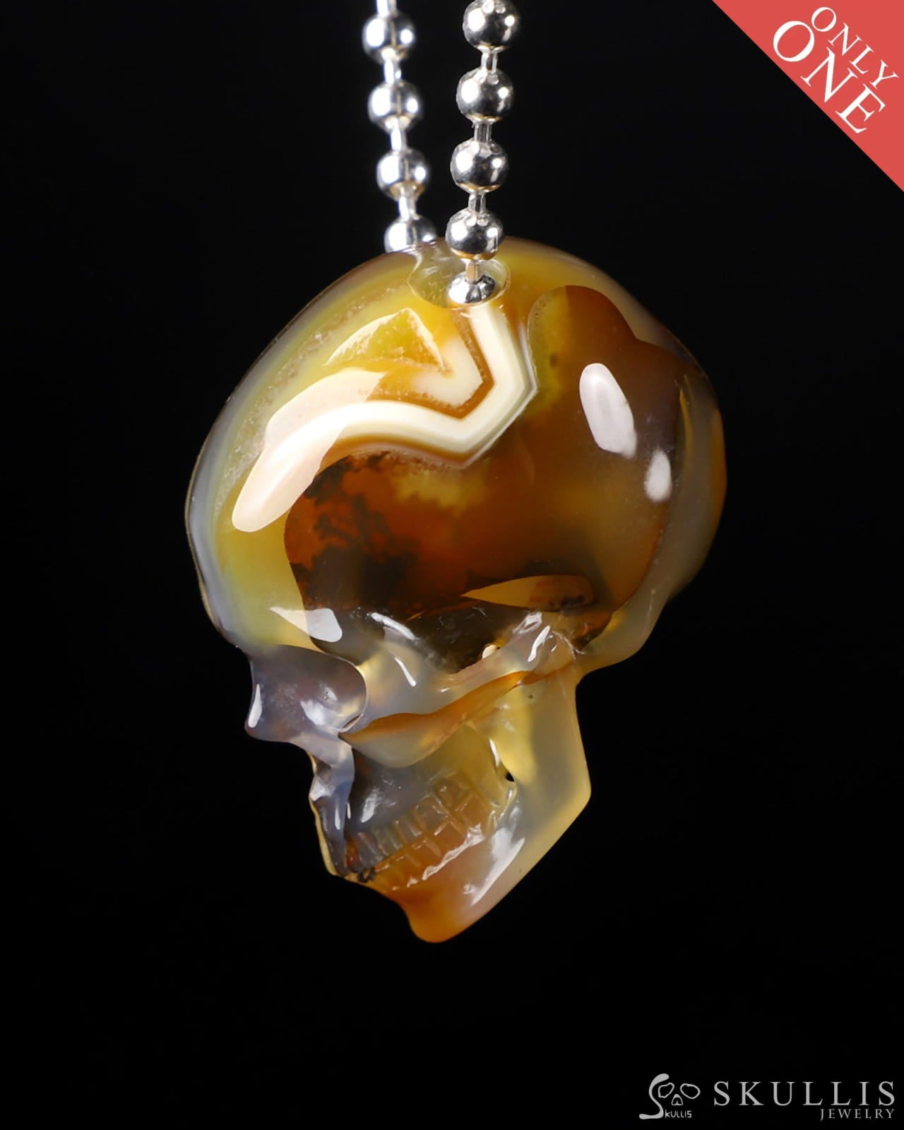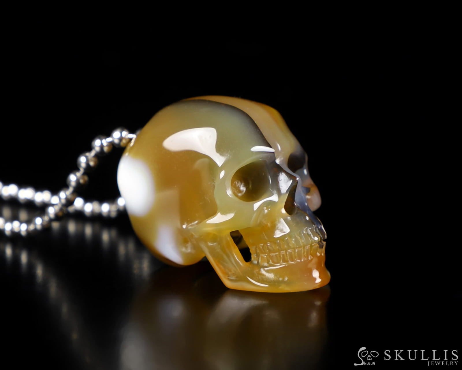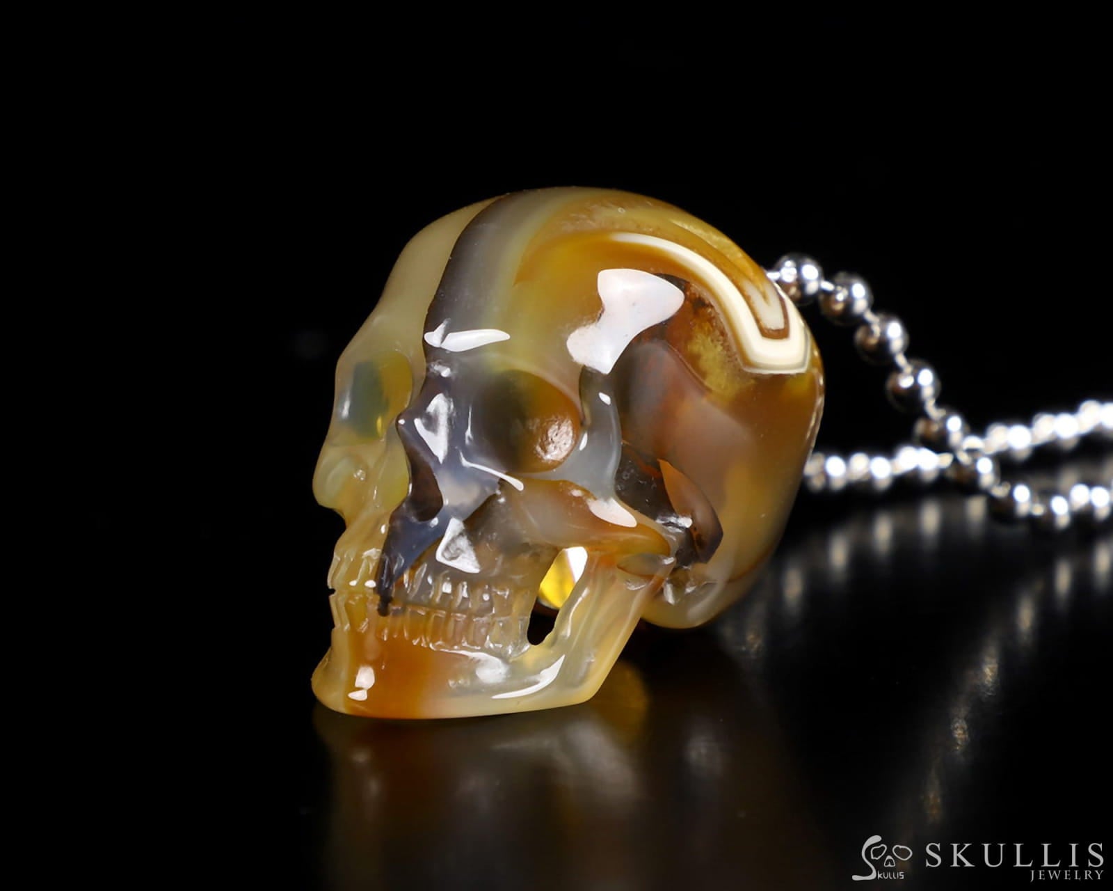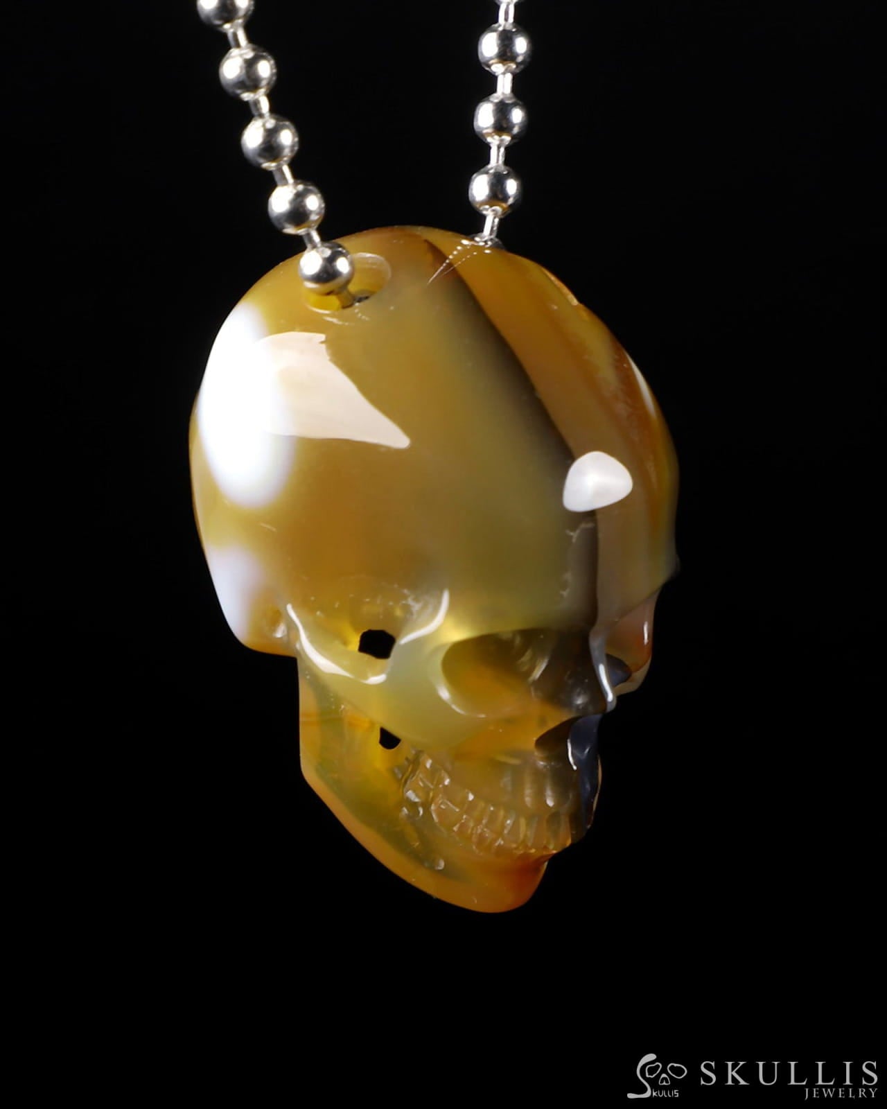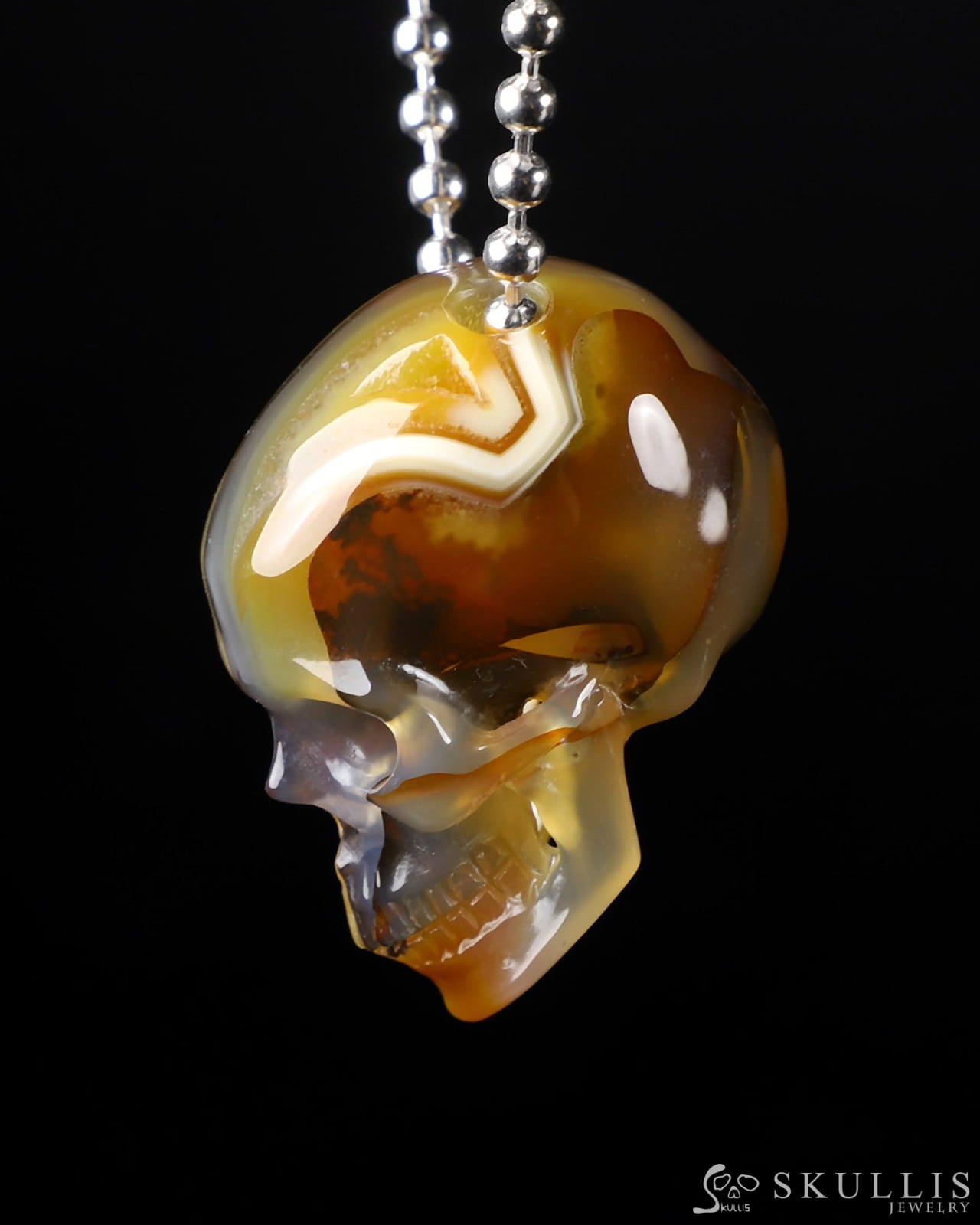 /Gem Skull Pendant Necklace of Premium Brazilian Agate Carved Hollow Skull with 925 Sterling Silver Chain - 0400027