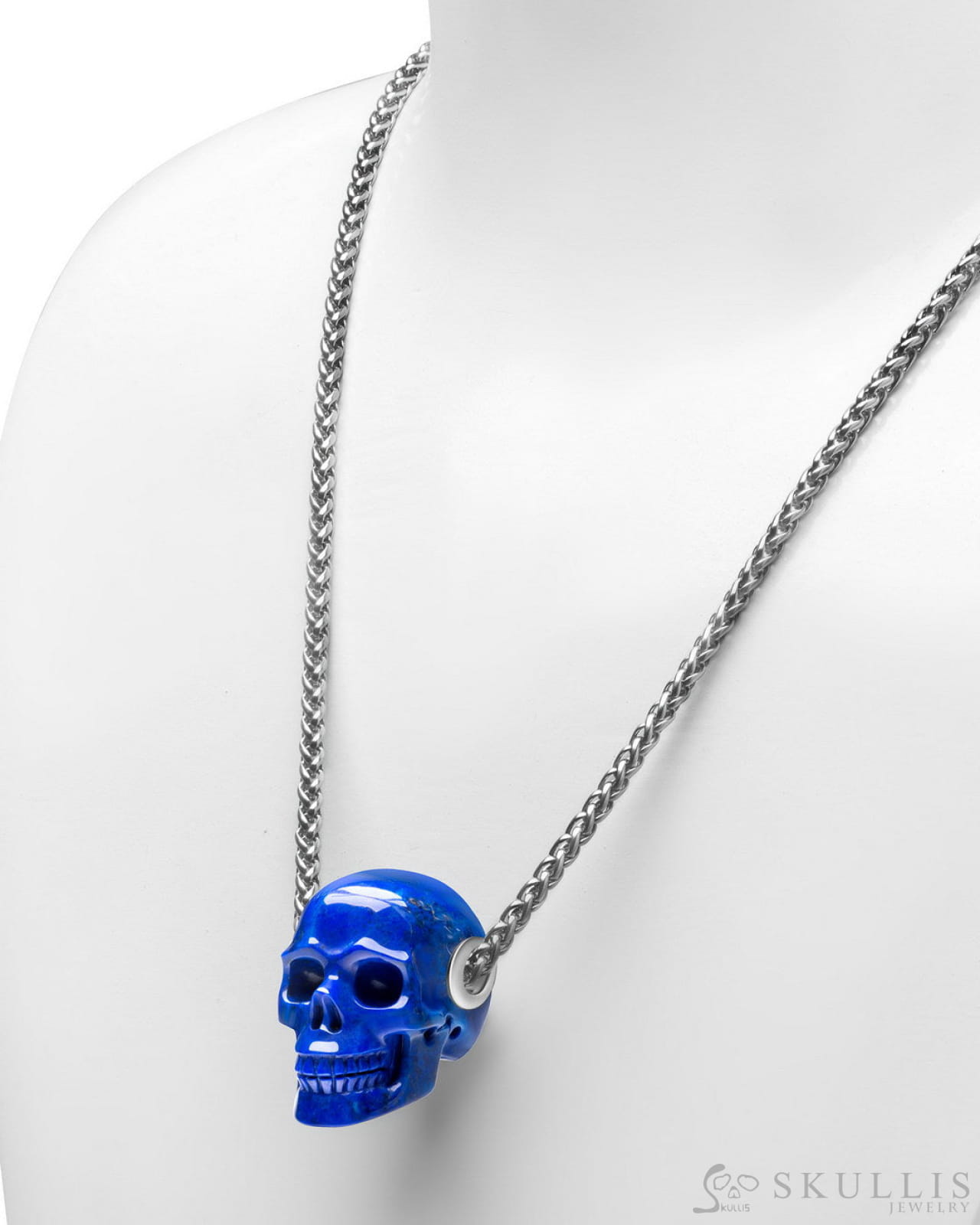 /Skullis Signature Lapis Lazuli Gem Skull Pendant or Necklace, Hand Carved, for Women & Men