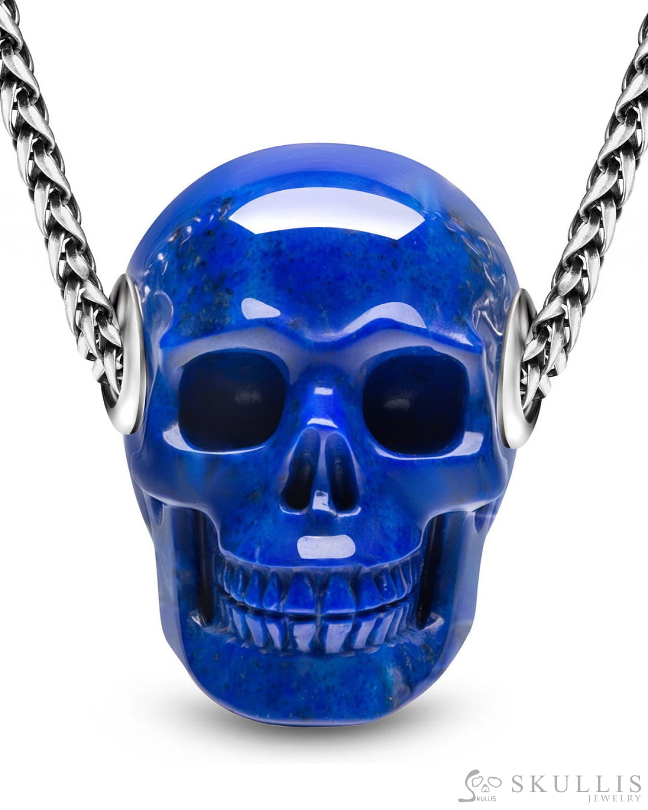Skullis Signature Lapis Lazuli Gem Skull Pendant or Necklace, Hand Carved, for Women & Men