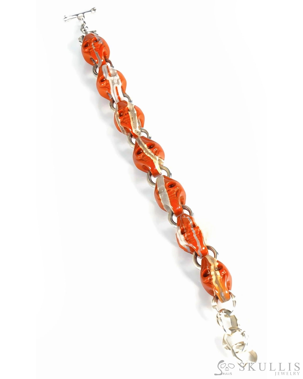 Dark stones are the soil of stillness, red stones the pulse of vitality, translucent stones the space between breaths—different textures of gemstone coexist here, just as reason and intuition intertwine in the everyday. Metal links allow each skull to remain independent yet intimately connected, like the individual and the world: apart, yet always joined.