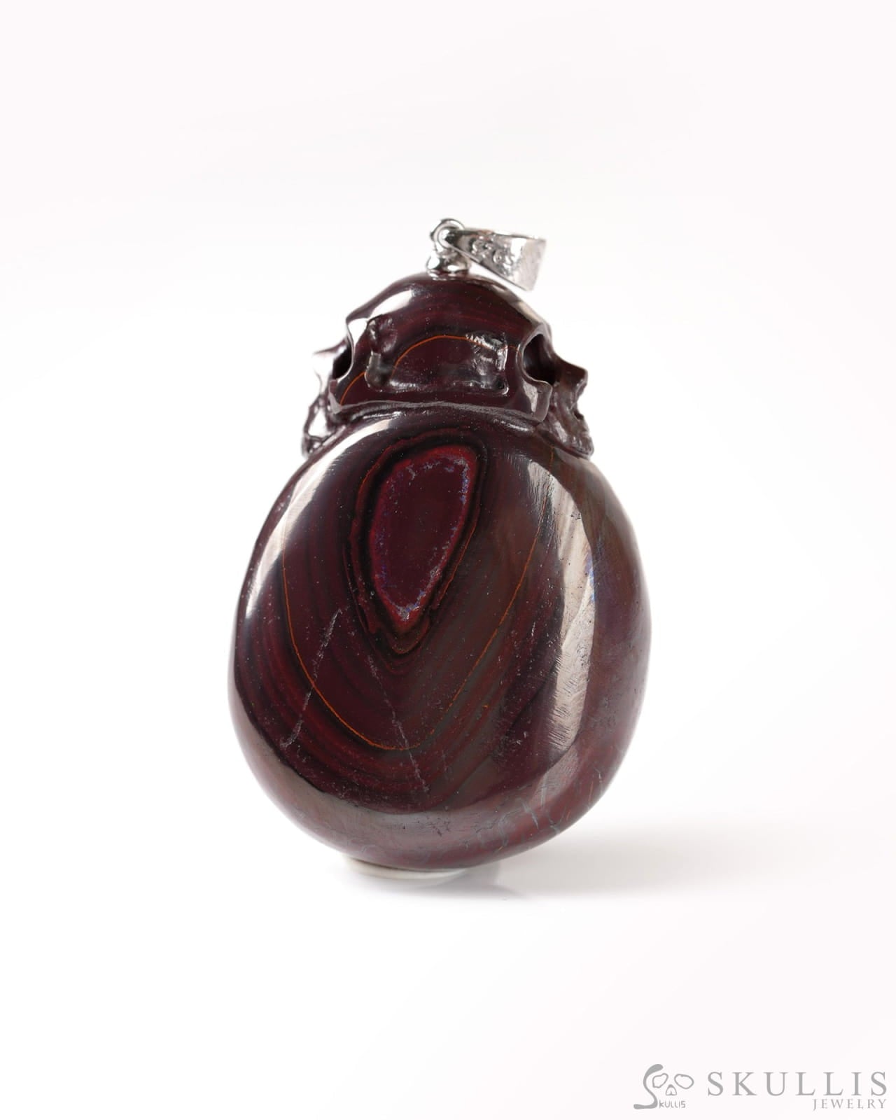 /Skullis Ammolite Gem Skull Pendant or Necklace, Hand Carved, for Women & Men - 0800068