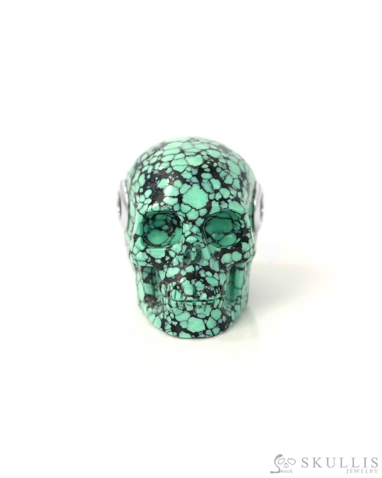 Skullis Signature Turquoise Gem Skull Ring, Hand Carved, Sterling Silver, for Women & Men - 0502784