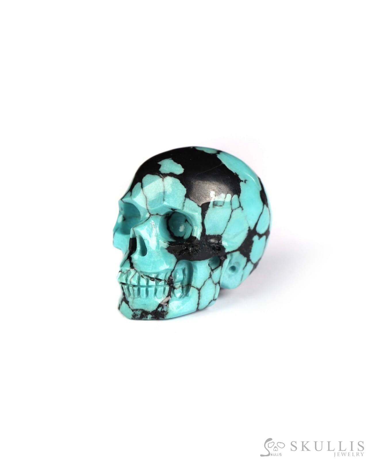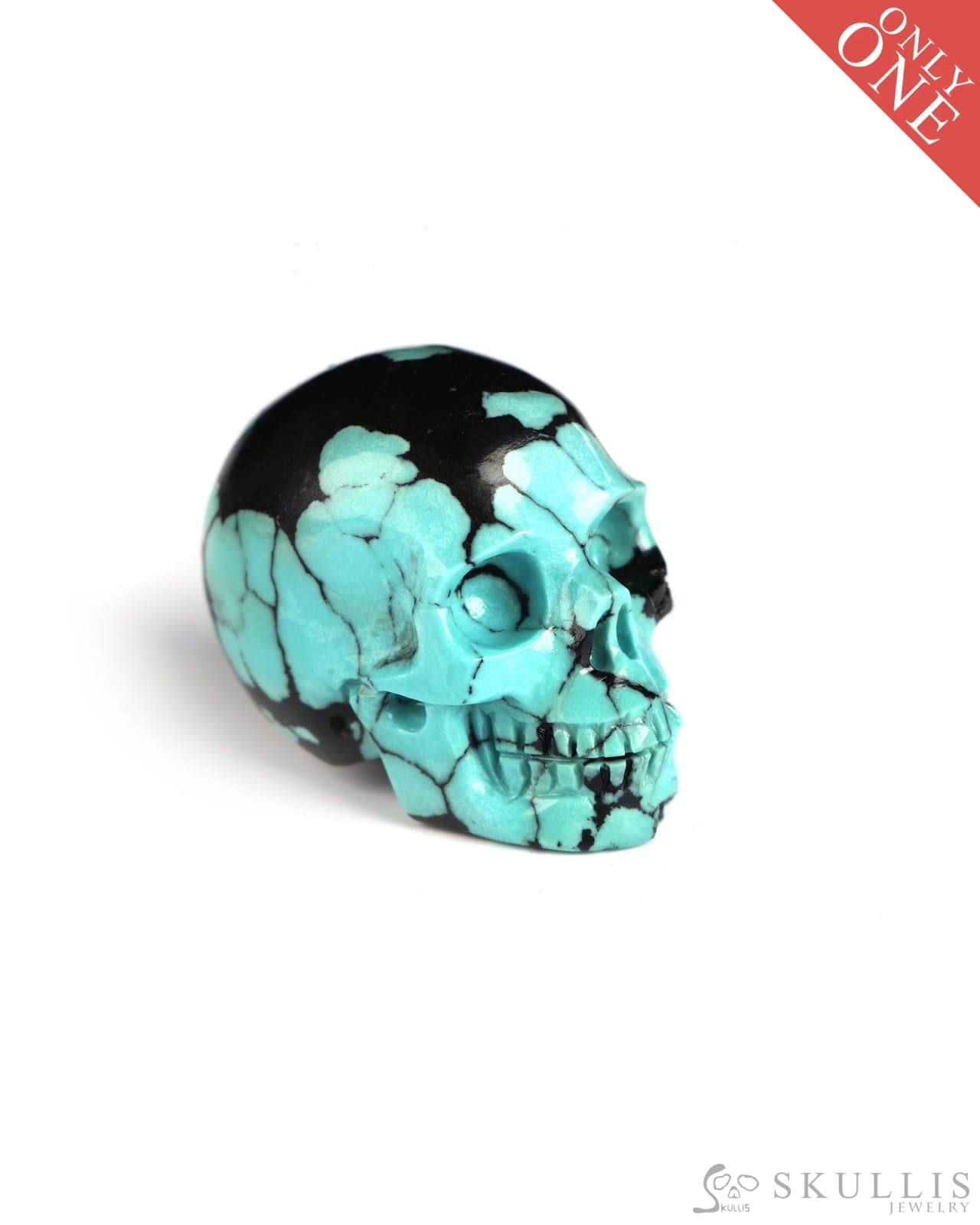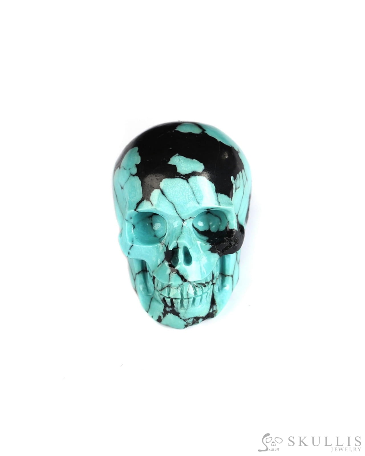 /Nice 1.1" Spiderweb Turquoise Carved Gem Skull, Skullis Realistic - 0500067