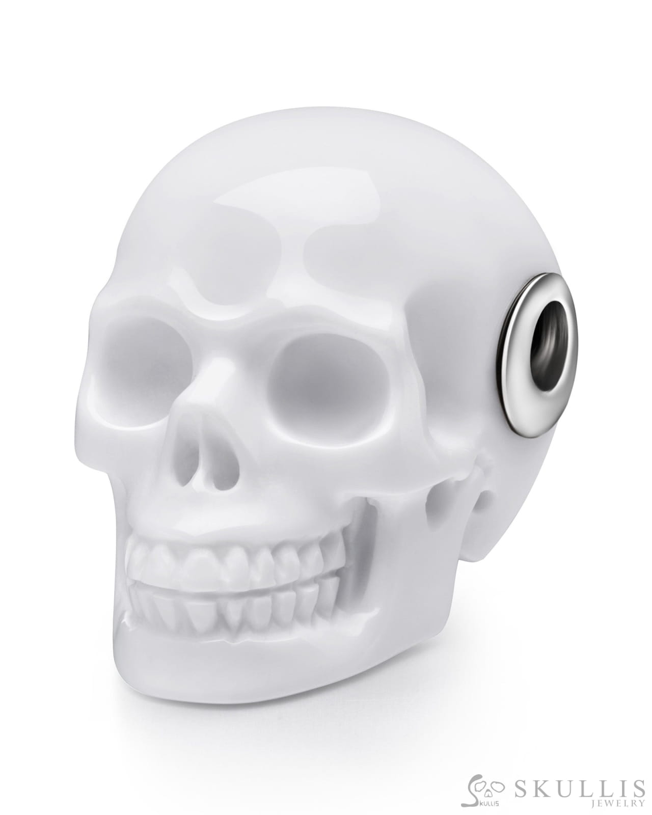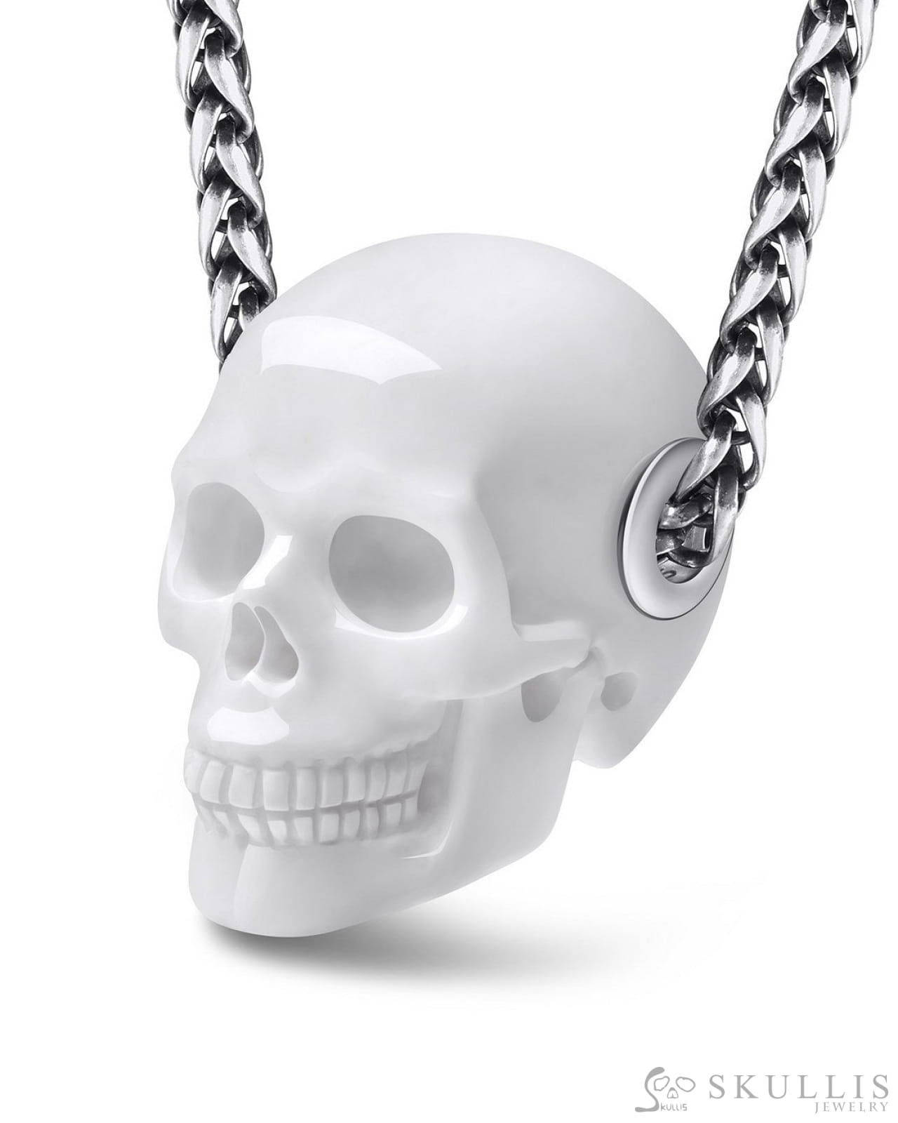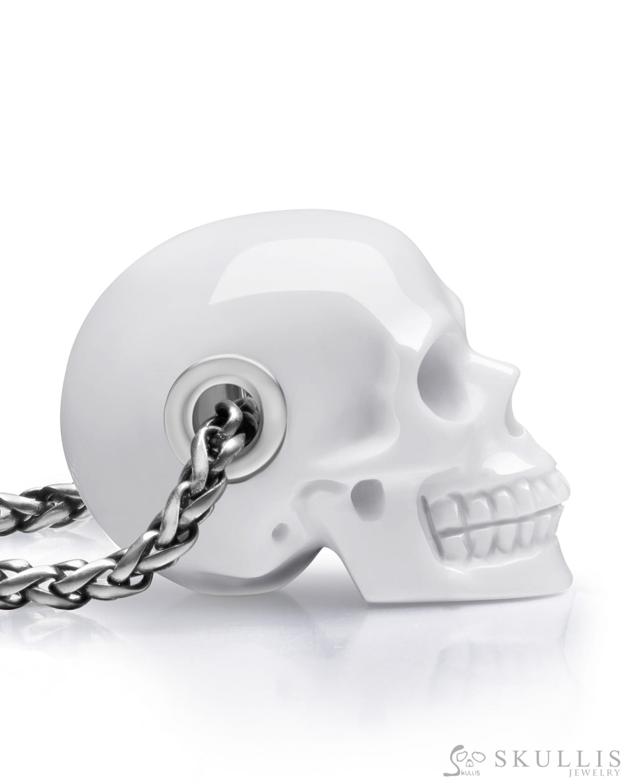 Skullis Signature White Jasper Gem Skull Pendant or Necklace, Hand Carved, for Women & Men