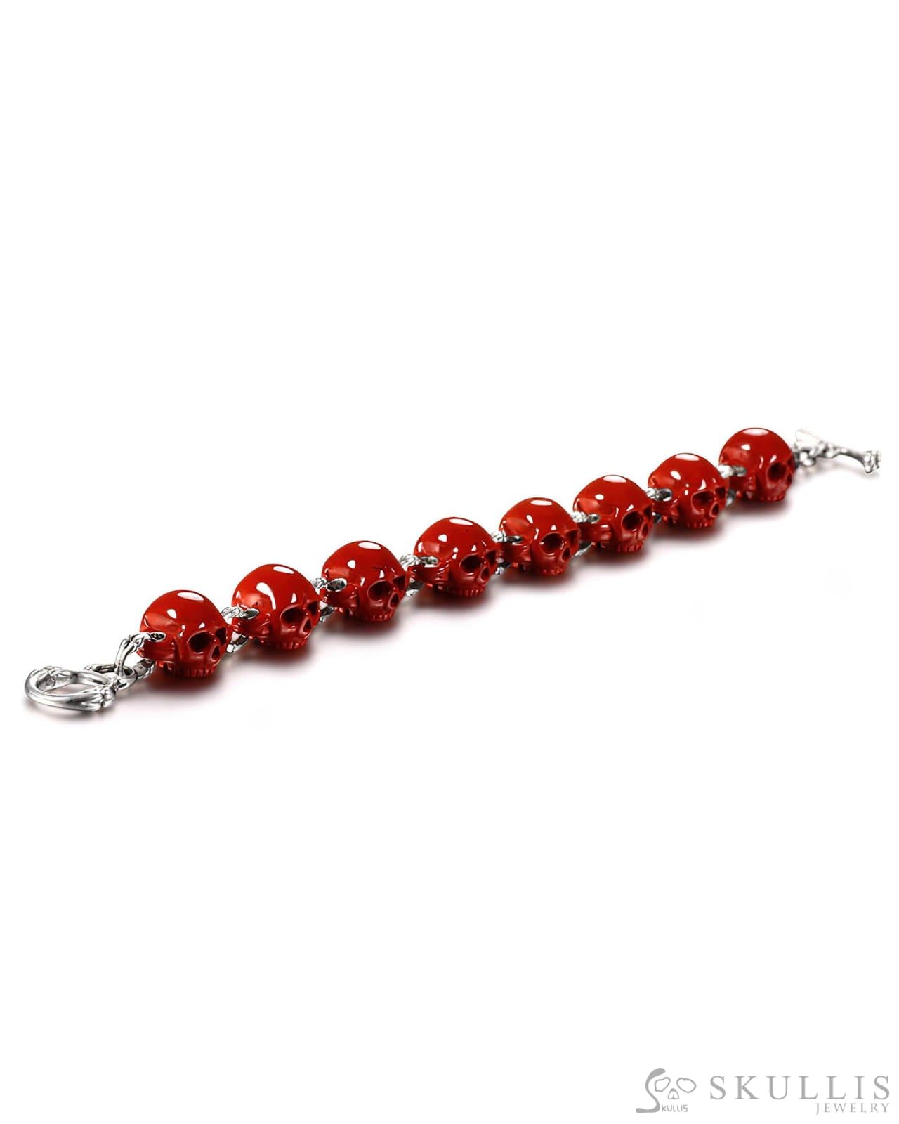 Red Vow-Gem Skull Bracelet of Red Jasper Carved Skull in 925 Sterling Silver