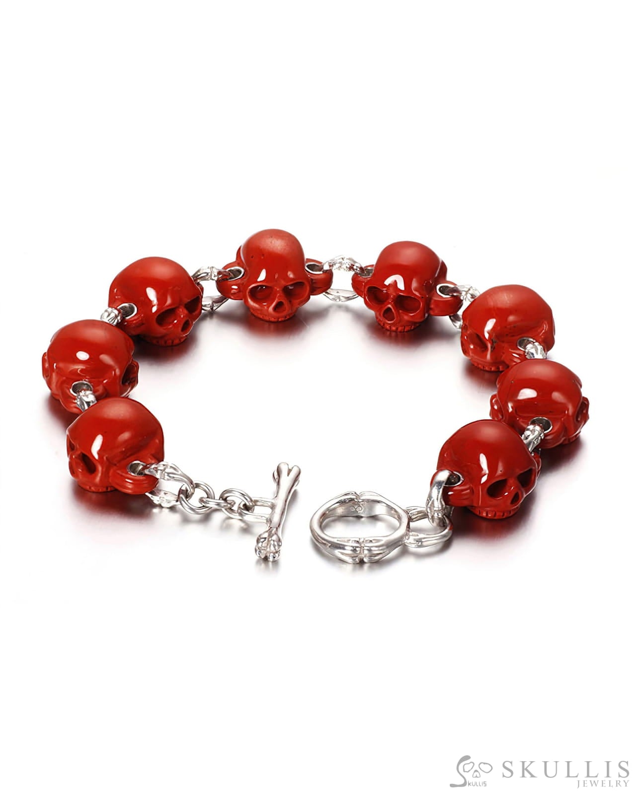 Home Skull Bracelet Style B7 Red Vow-Gem Skull Bracelet of Red Jasper Carved Skull in 925 Sterling Silver
