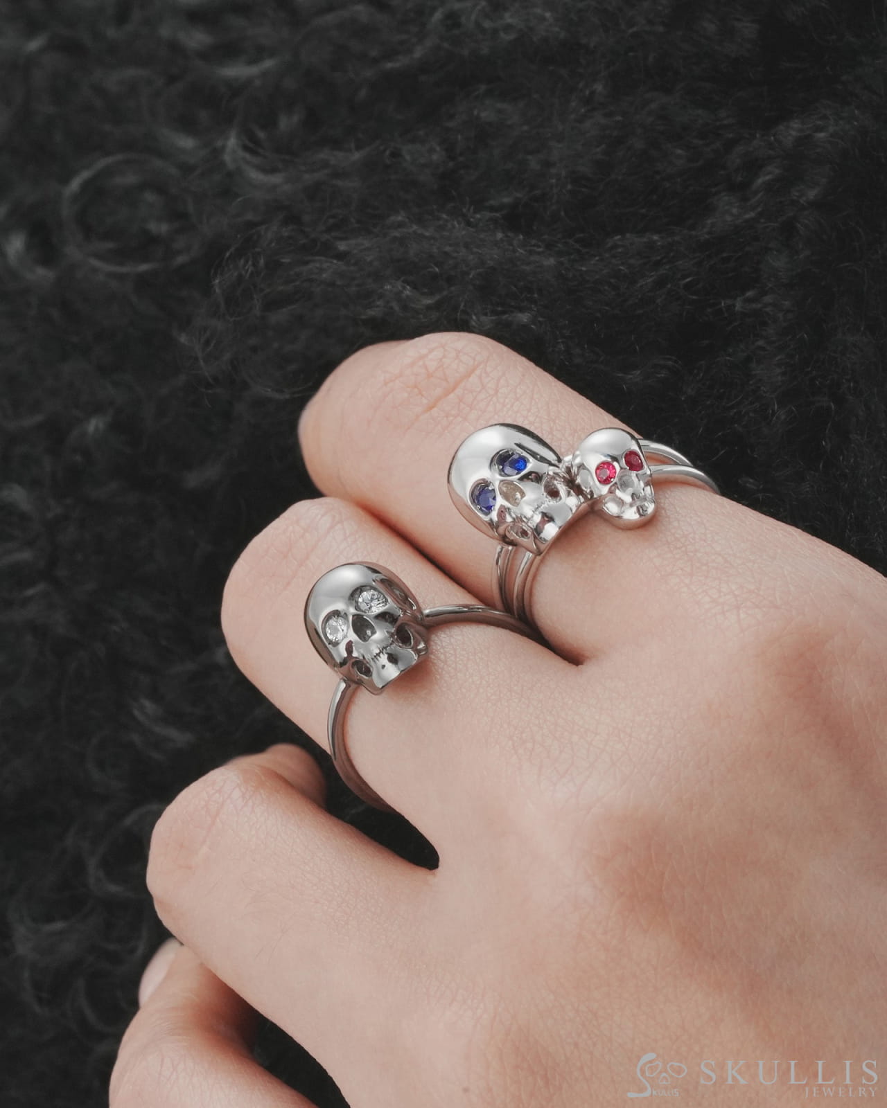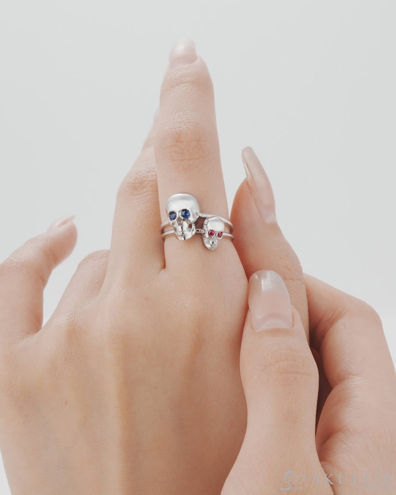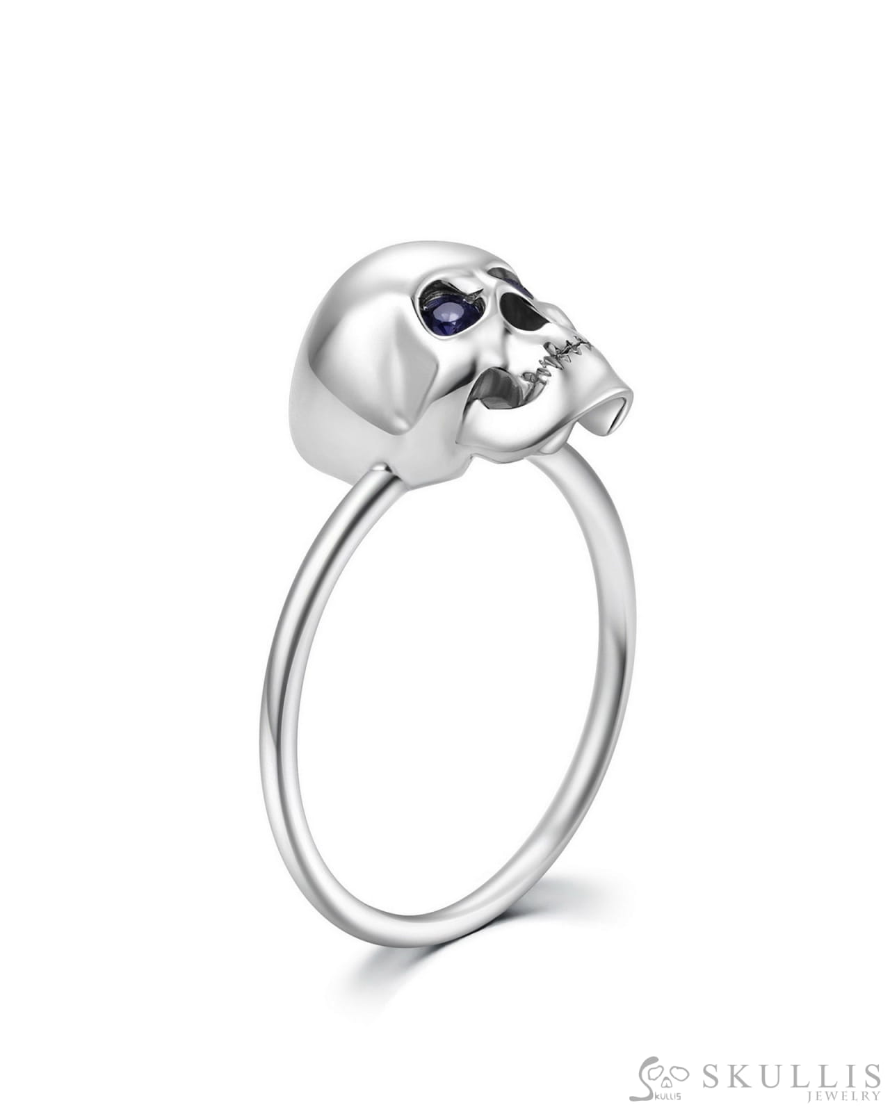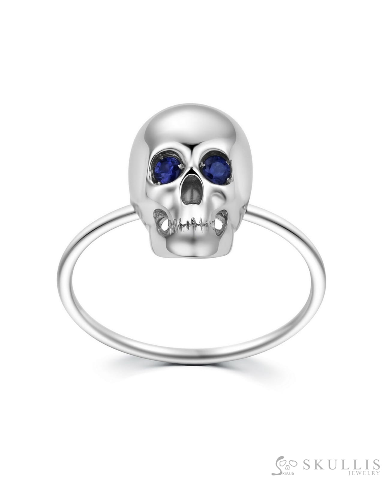 The Blue Witness-925 Sterling Silver Skull Ring with Sapphire Eyes