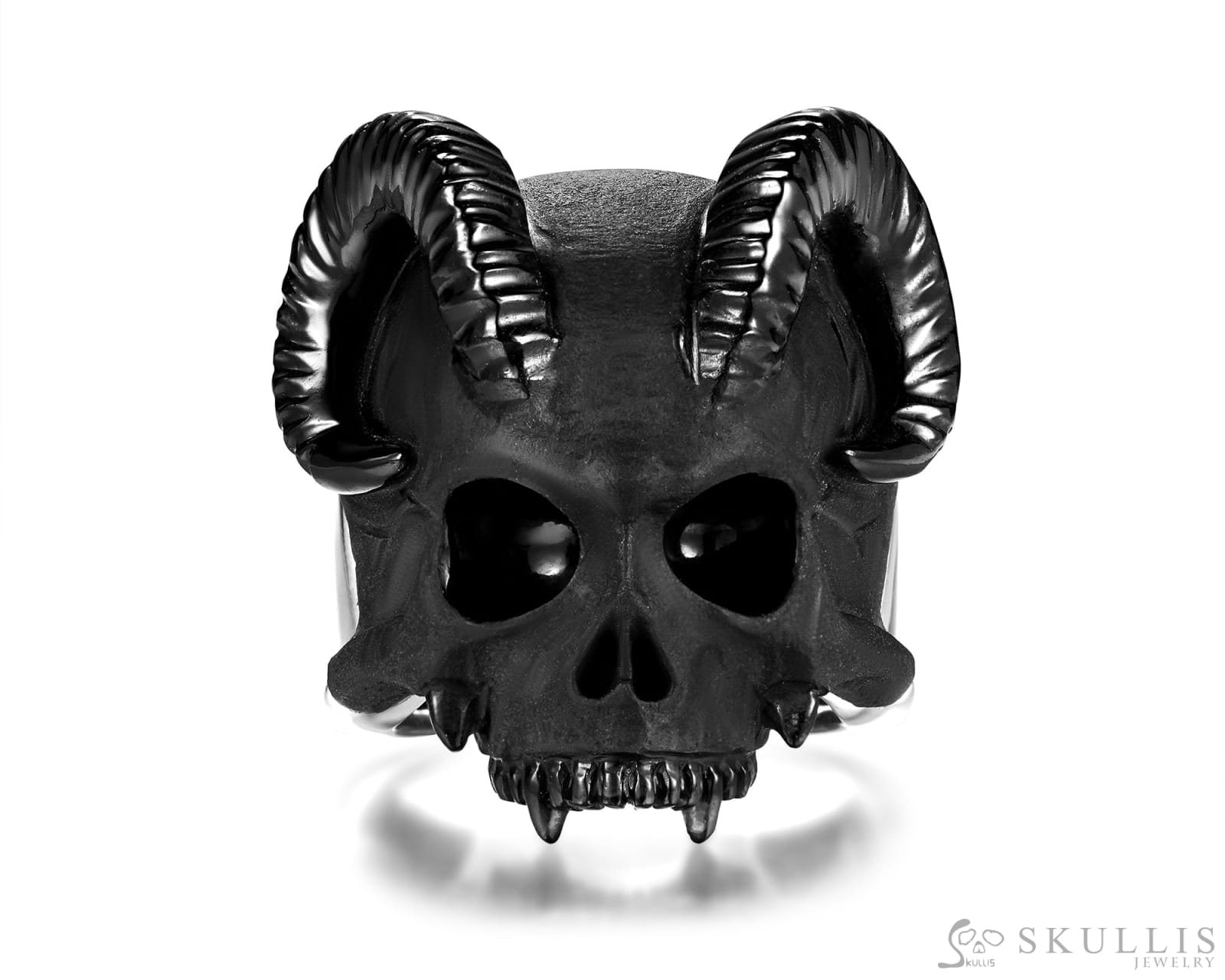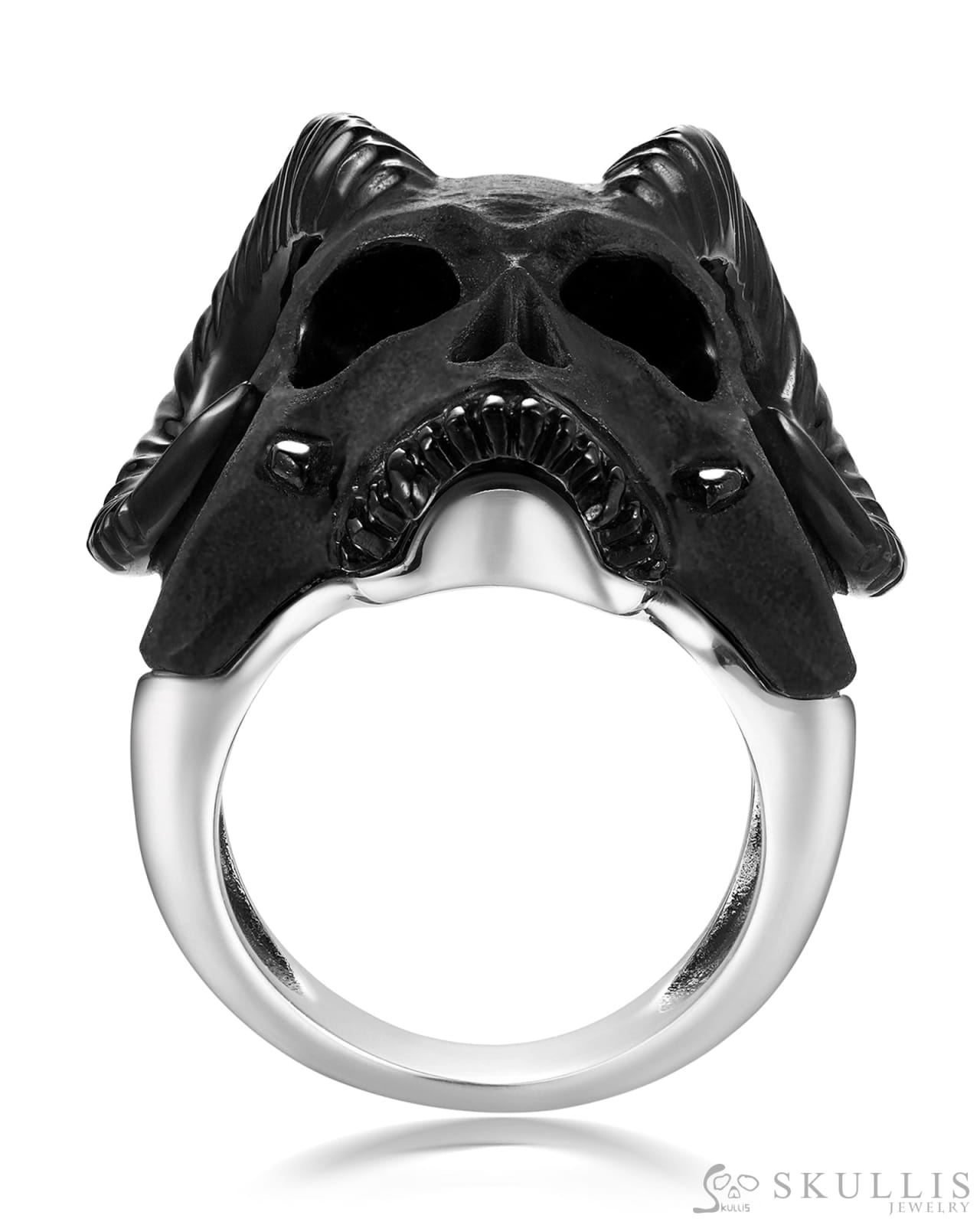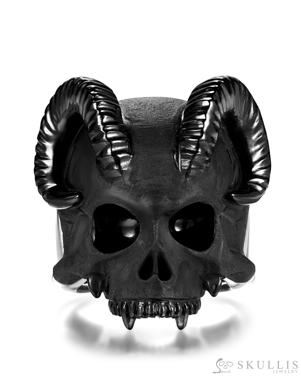 Home Skull Rings The Infernal Sovereign-Gem Skull Ring of Black Obsidian Carved Beast/Demon Skull with 925 Sterling Silver