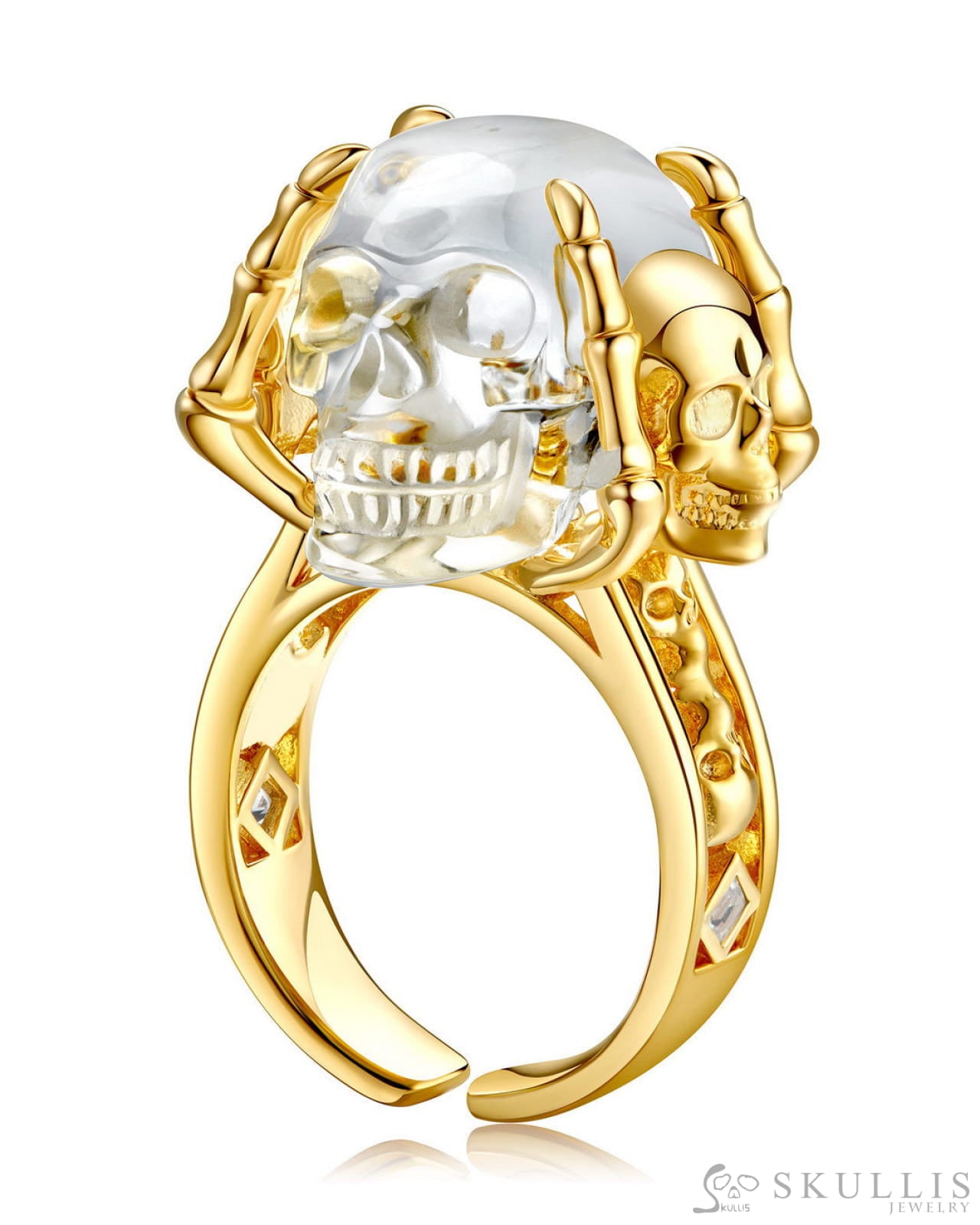 Supported by skeletal hands,