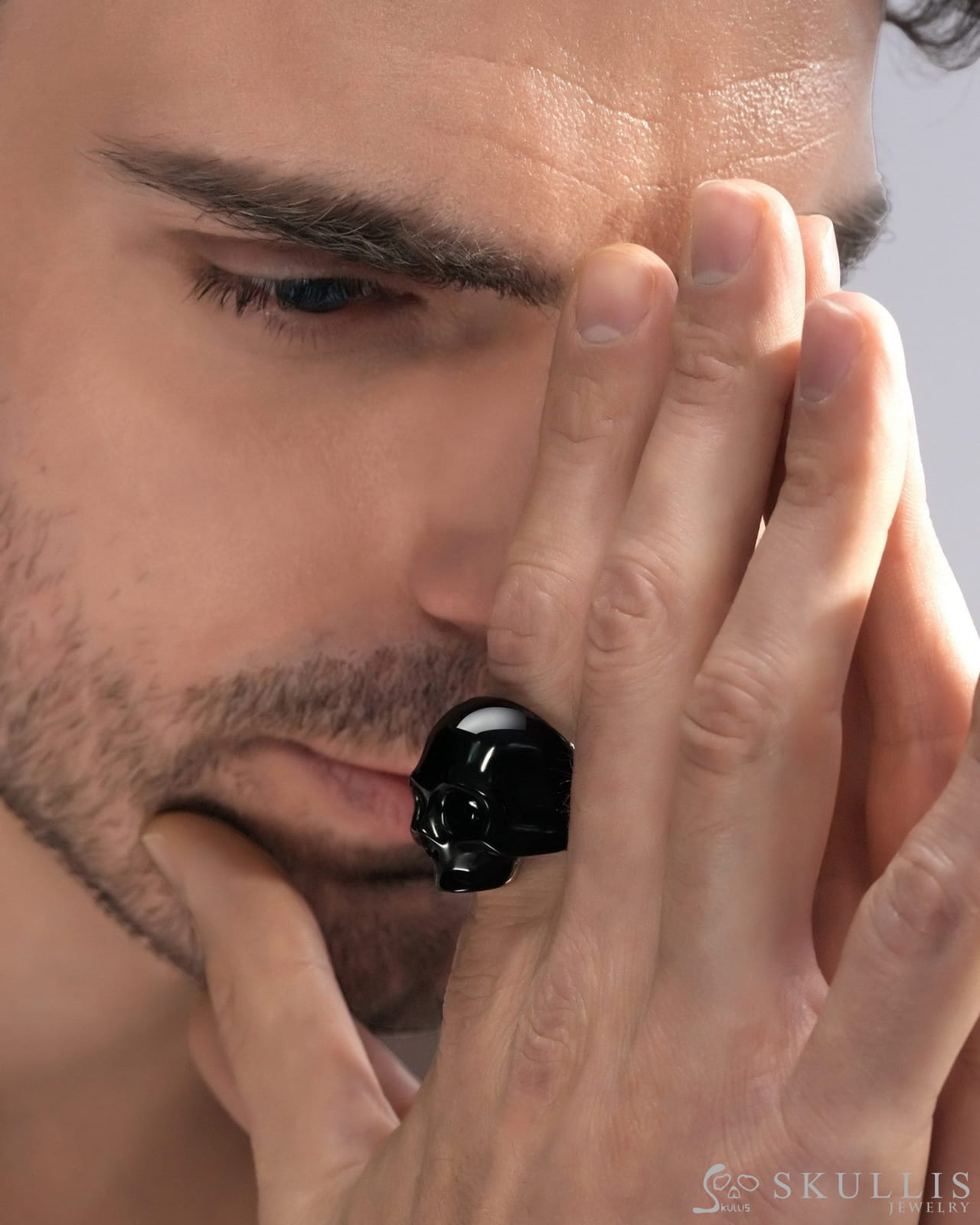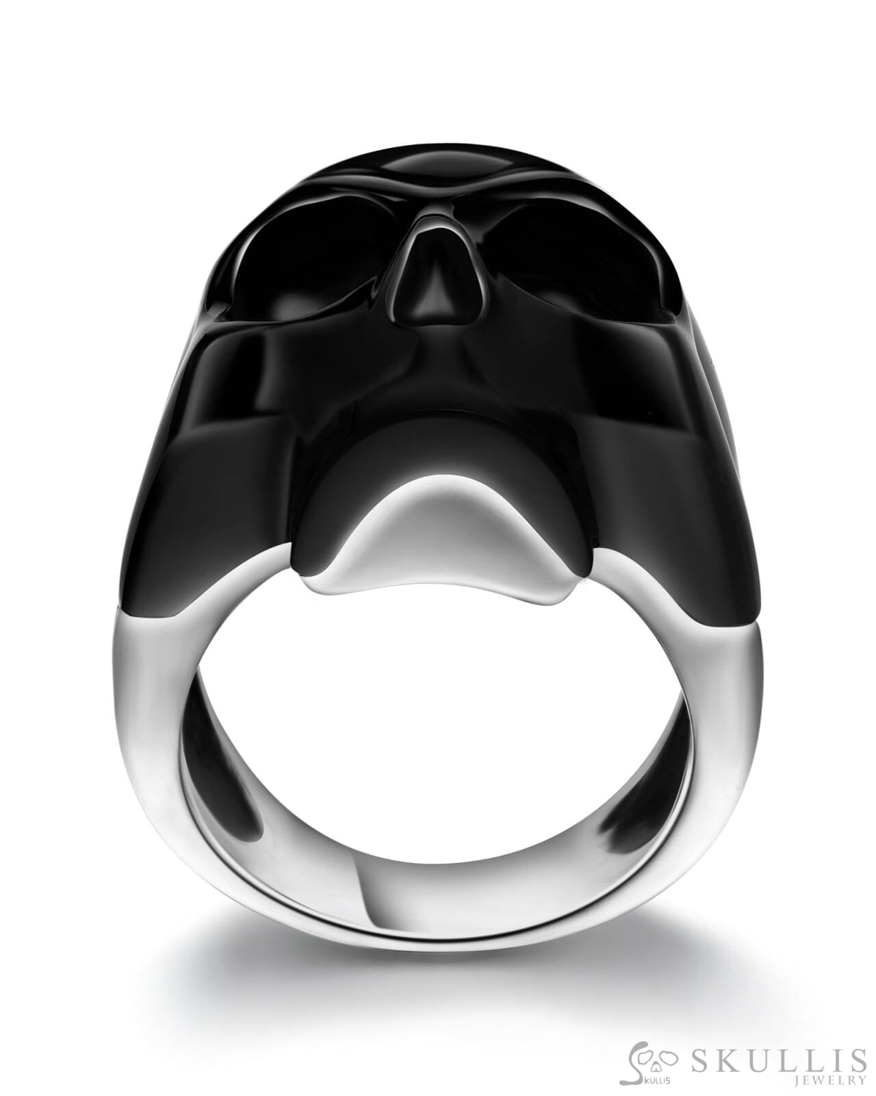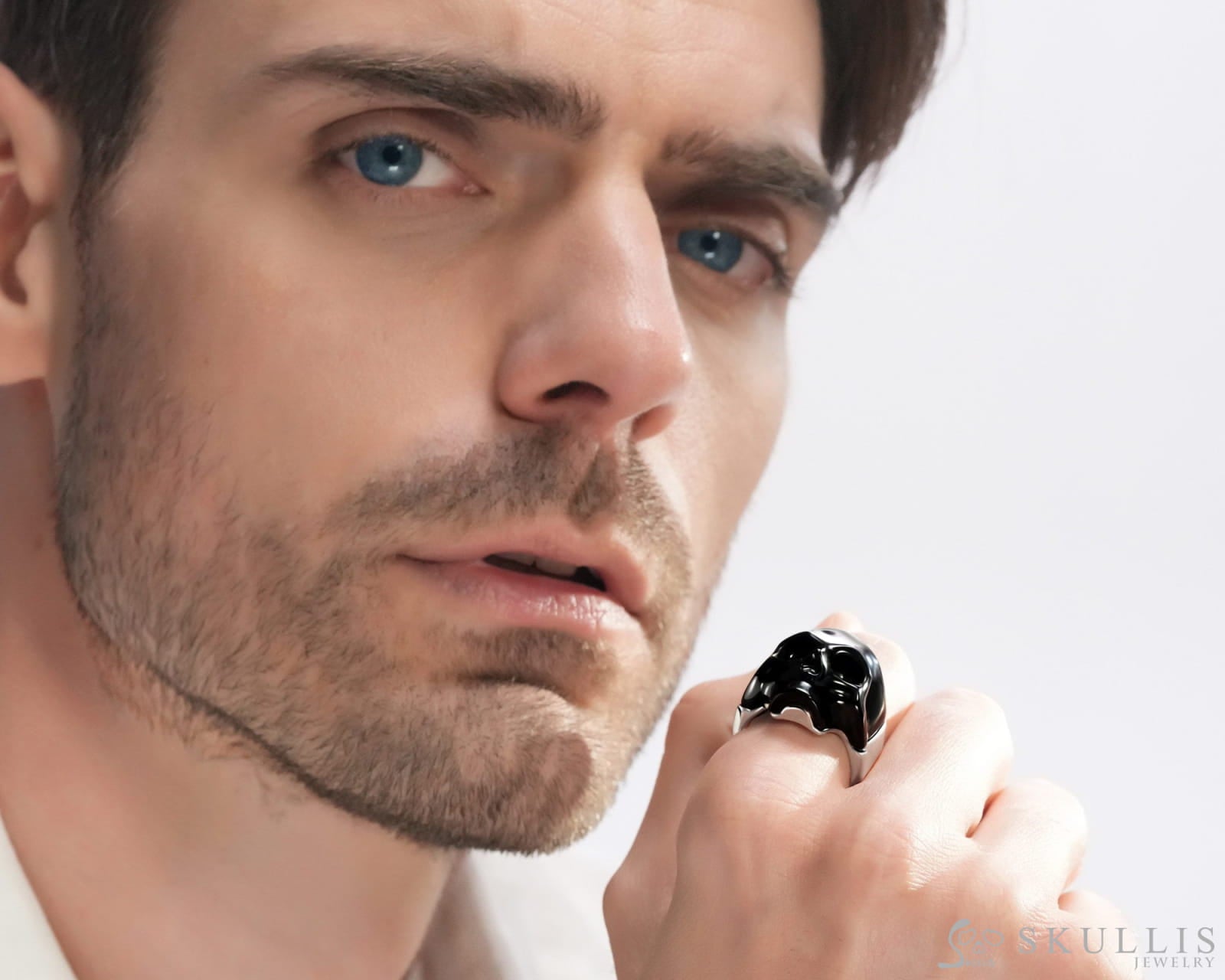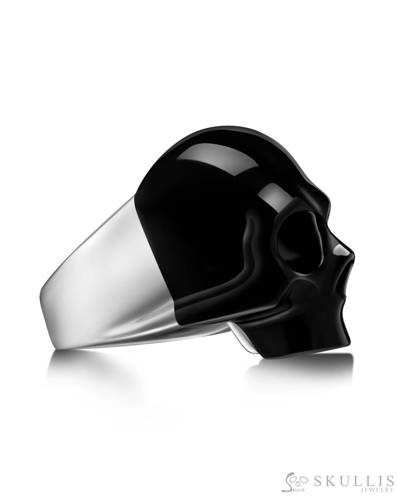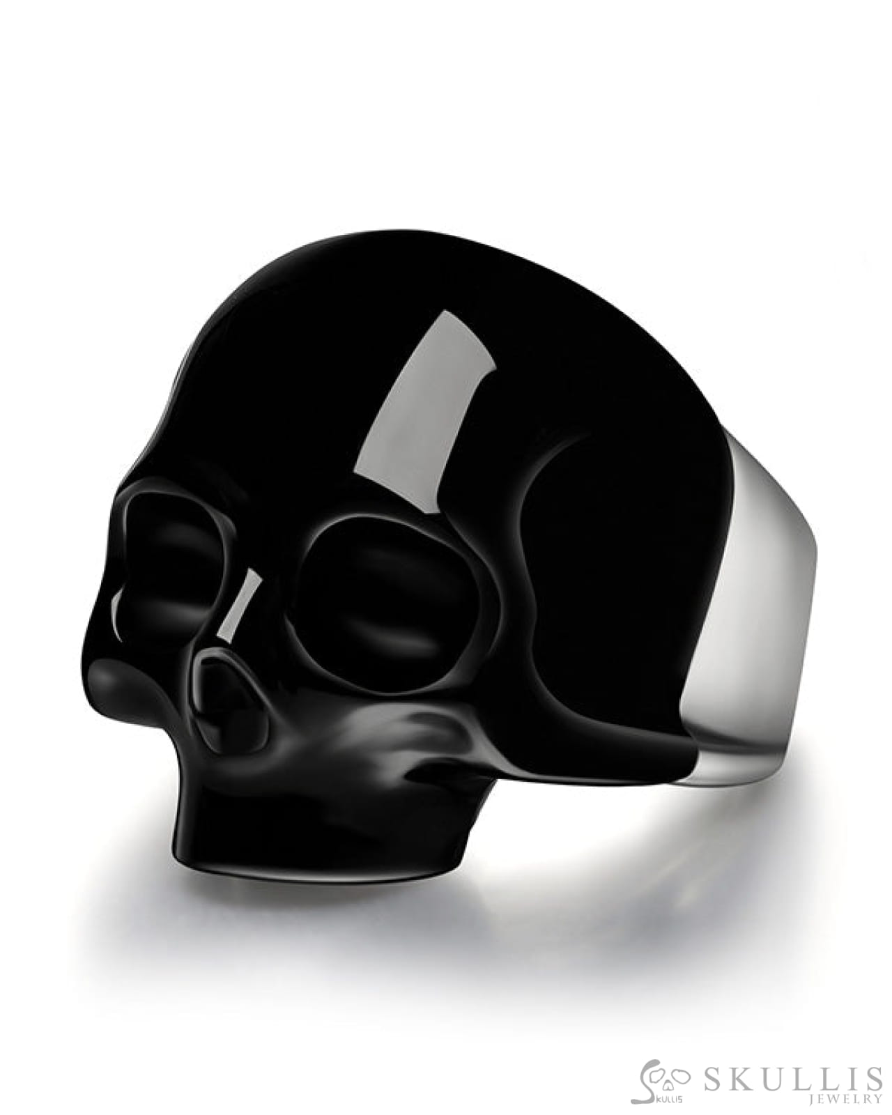 Skullis Signature Black Obsidian Gem Skull Ring, Hand Carved, Sterling Silver, for Women & Men