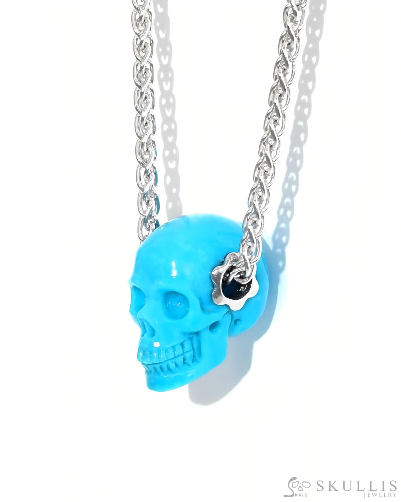 Skullis Signature American Turquoise Gem Skull Pendant or Necklace, Hand Carved, Sterling Silver 925 Chain, for Women & Men
