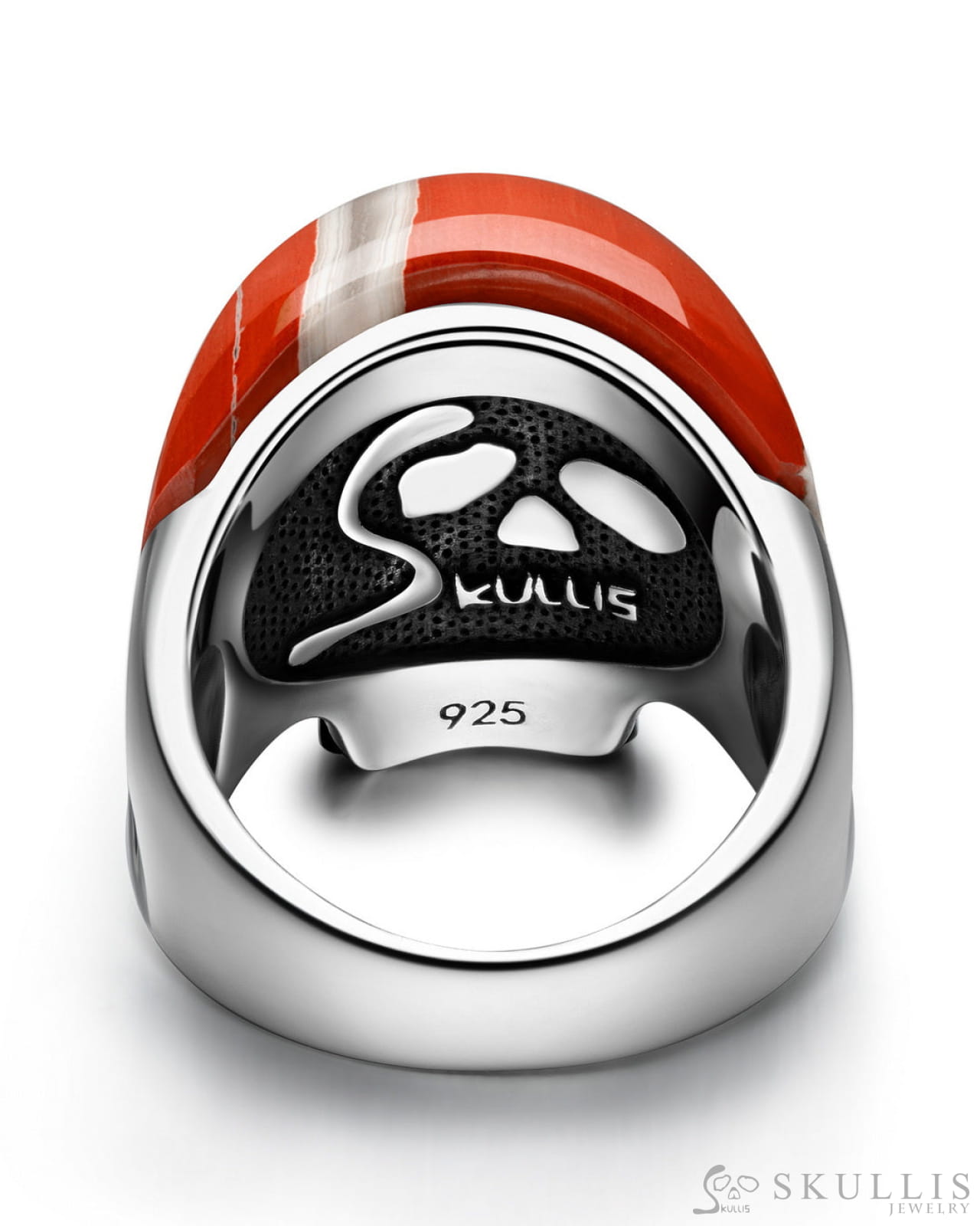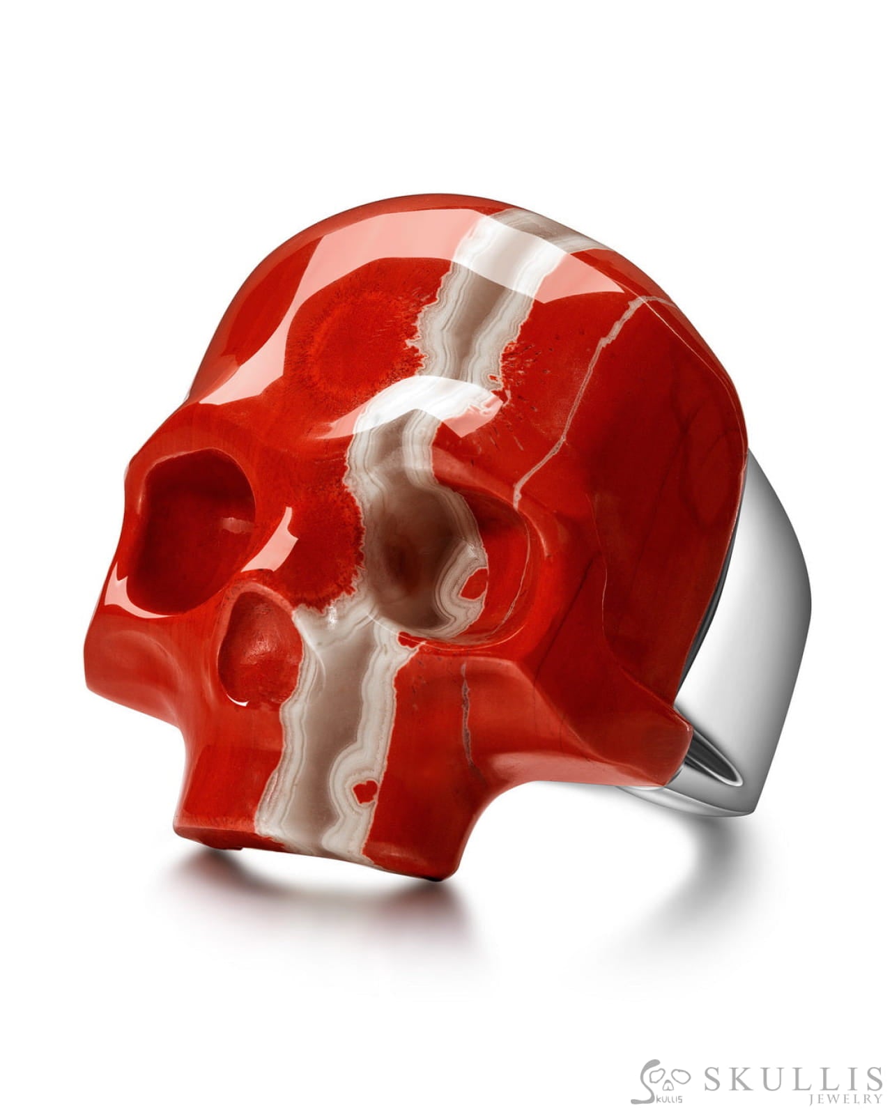 Skullis Signature Red Jasper Gem Skull Ring, Hand Carved, Sterling Silver, for Women & Men